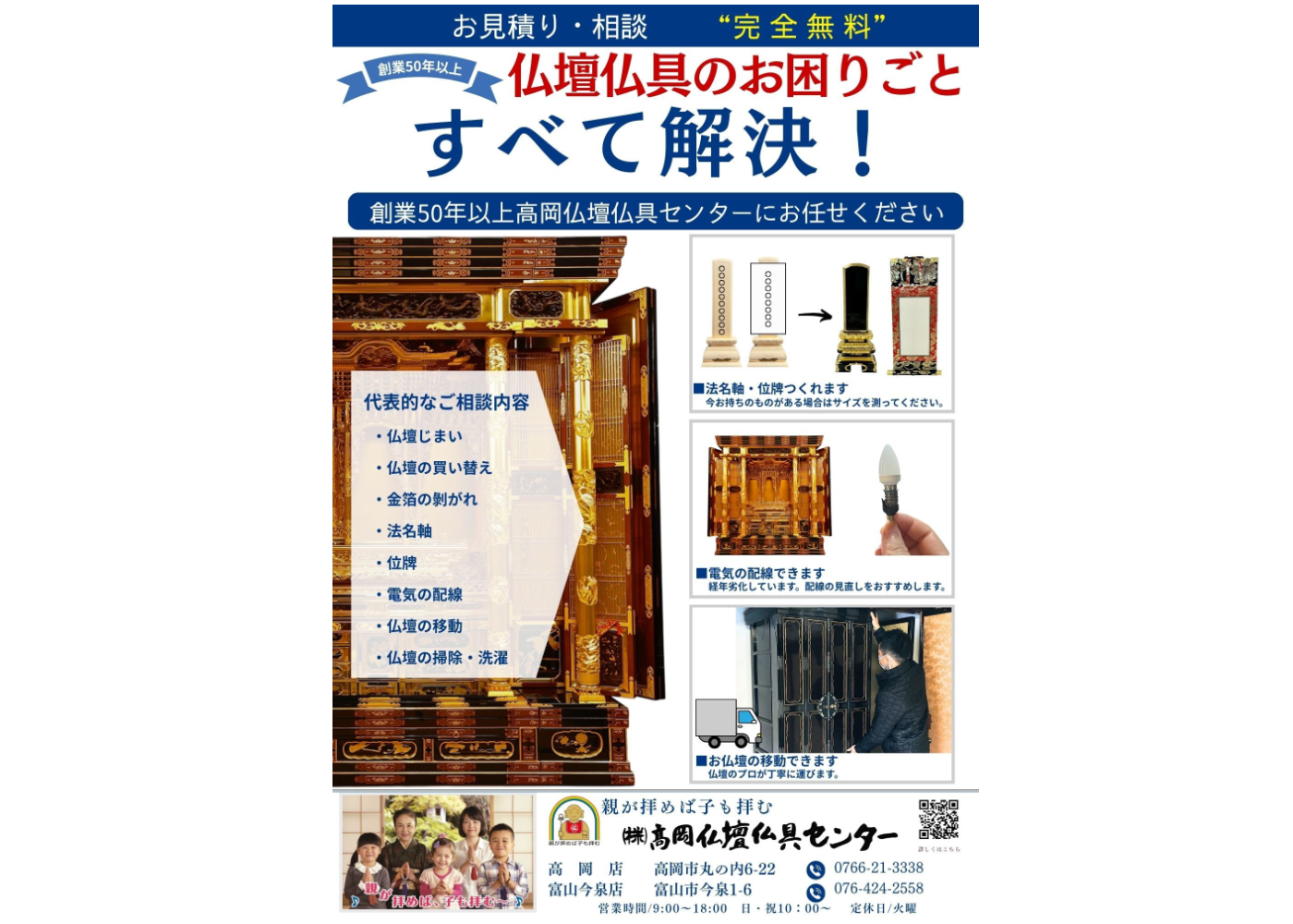 | 2025.09.03 お仏壇、仏具のお困りごとすべて解決! |