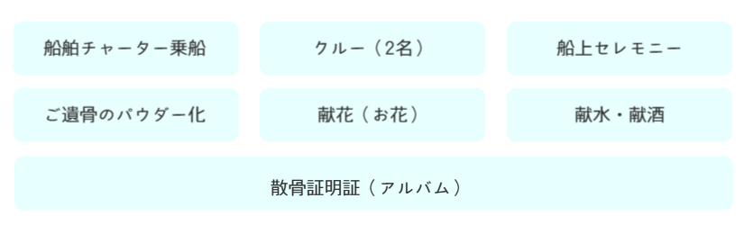 船上でお一人様から、ご家族、親族様のみのプライベートに散骨いただけるチャータープランです。